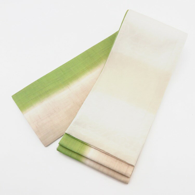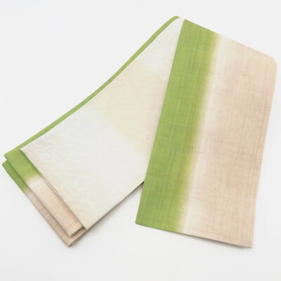 帯 小袋帯 正絹 半幅帯 日本製 リバーシブル 着物 浴衣 グラデーション 半巾帯 帯 半幅帯 文様 縞 ボーダー 黄緑 グリーン 白 ホワイト ベージュ クリーム レトロ 大正浪漫 モダン 和柄