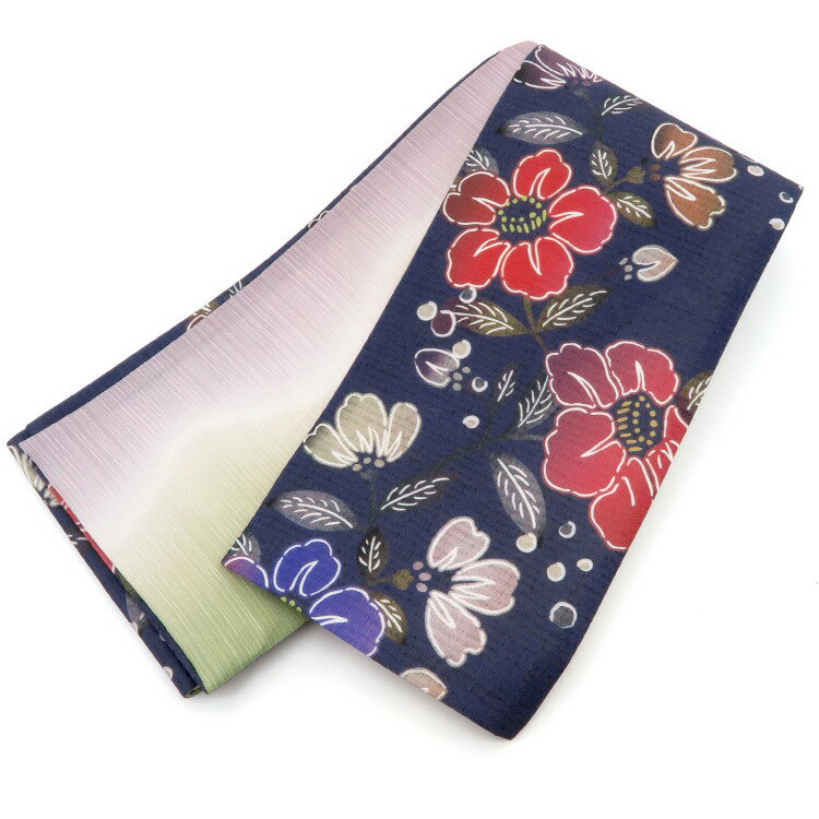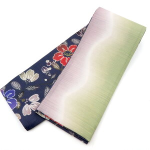 帯 小袋帯 正絹 半幅帯 日本製 リバーシブル 着物 浴衣 グラデーション 半巾帯 帯 半幅帯 文様 花柄 紺 ネイビー 赤 レッド 紫 緑 レトロ 大正浪漫 モダン 和柄