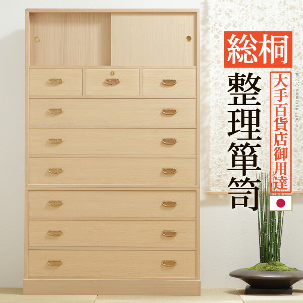 サイズ(cm):幅106x奥行45.5x高さ171.5cm・約65kg(上台-約40kg/下台-約25kg)大引出し内寸-幅96x奥行39x高さ15cm、小引出し内寸-幅27.5x奥行39x高さ15cm、引き戸内寸-幅49x奥行36x高さ31.5cm材質:本体-天然木(桐)・字造り・との粉ロウ引き仕上げ、金具-真ちゅう(金色・ツヤ消し)転倒防止金具付き上下重ね式送料について配送について送料無料※沖縄・離島・一部地域を除く詳しくはお問い合わせ下さい。